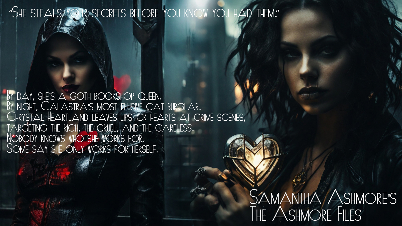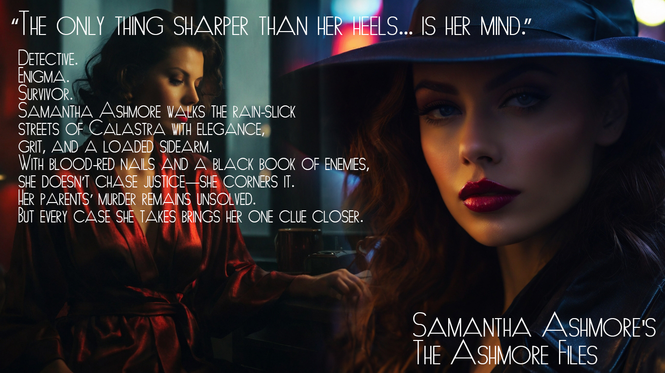Detective. Enigma. Survivor. Samantha Ashmore walks the rain-slick streets of Calastra with elegance, grit, and a loaded sidearm. With blood-red nails and a black book of enemies, she doesn’t chase justice—she corners it. Her parents’ murder remains unsolved. But every case she takes brings her one clue closer.