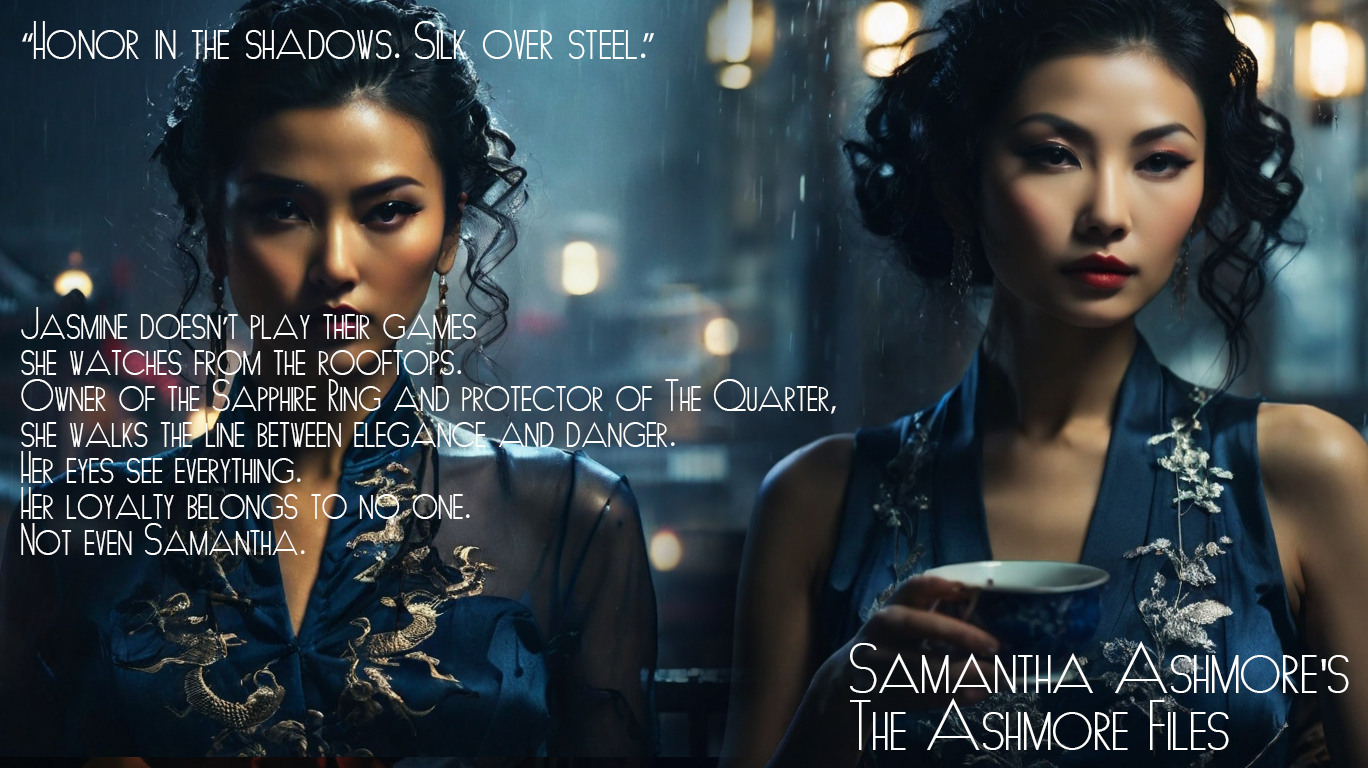 Jasmine doesn’t play their games—she watches from the rooftops. Owner of the Sapphire Ring and protector of The Quarter, she walks the line between elegance and danger. Her eyes see everything. Her loyalty belongs to no one. Not even Samantha.