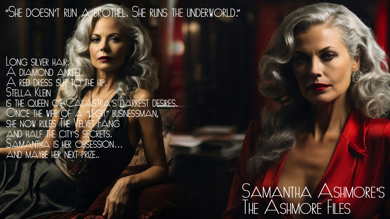 Long silver hair. A diamond anklet. A red dress slit to the hip. Stella is the queen of Calastra’s darkest desires. Once the wife of a “legit” businessman, she now rules The Velvet Fang and half the city’s secrets. Samantha is her obsession, and maybe her next prize.