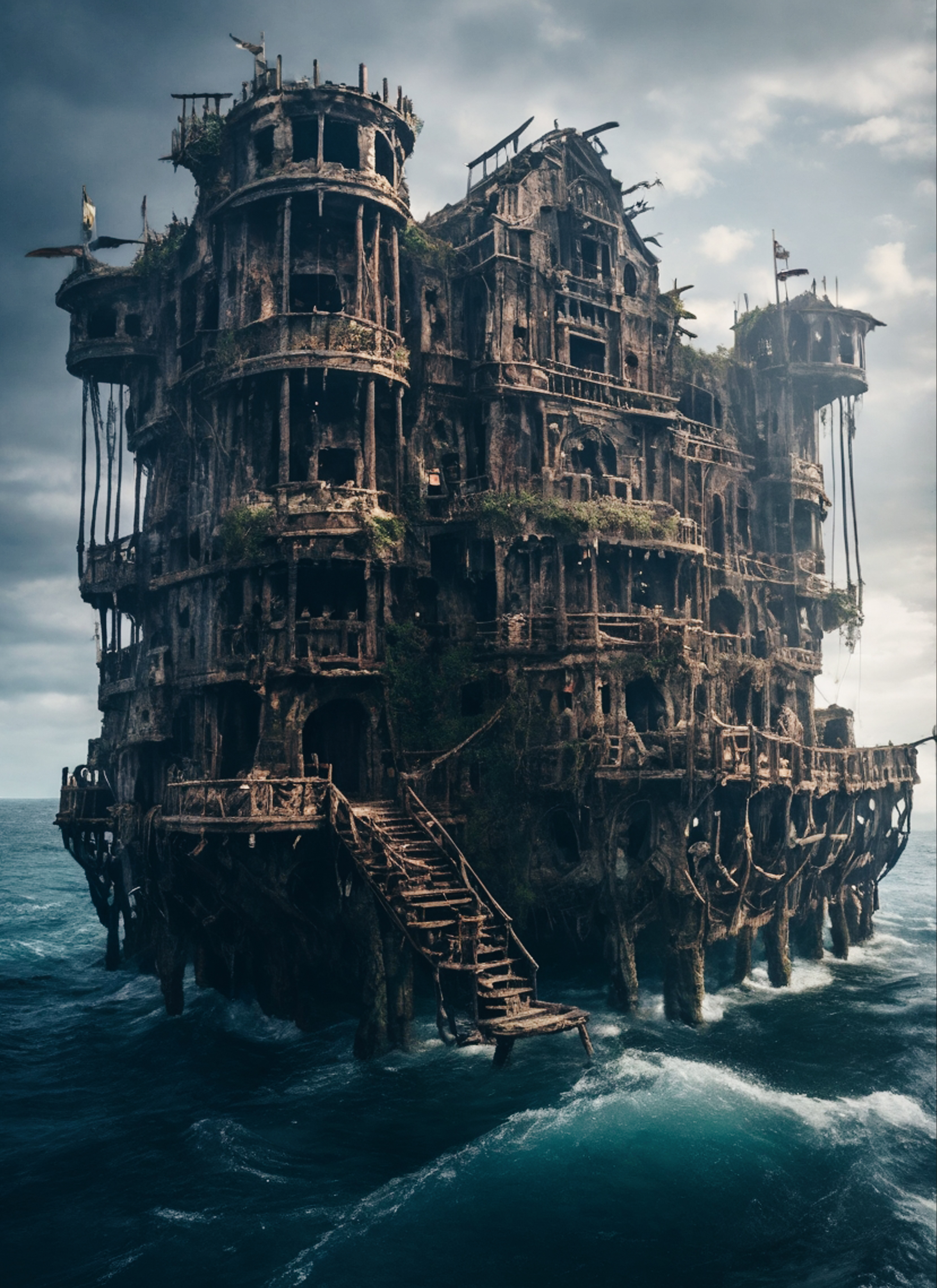 Description: A floating, lawless pirate stronghold built from the wreckage of centuries. Home to raiders, exiled royals, and sea witches.